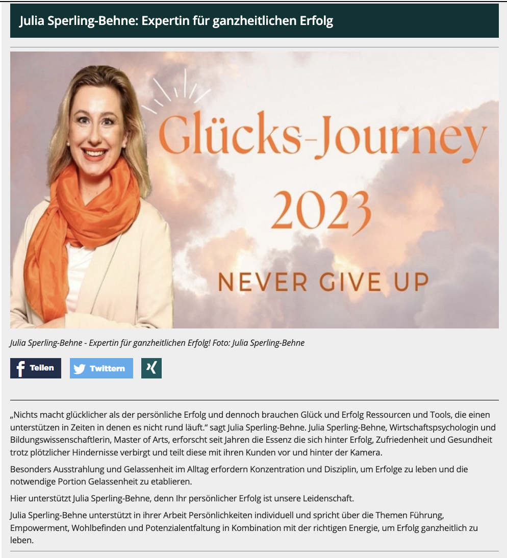 Julia Sperling-Behne transportiert diese besondere Energie, von der sie spricht. Man spürt ihre Leidenschaft für die Themen Erfolg & Motivation und dies zu leben.