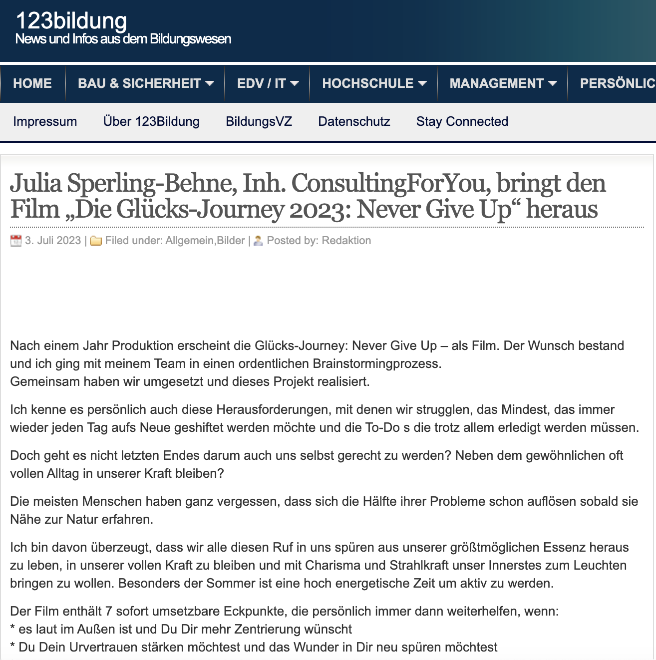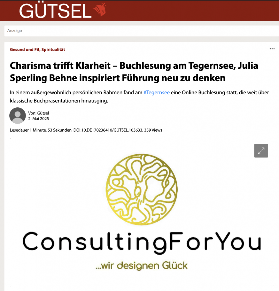 Als Inhaberin von ConsultingForYou und Glow Media unterstützt Julia Sperling-Behne, M.A. im Bereich Potential und Empowerment und verbindet wissenschaftlich fundierte Erkenntnisse mit intuitivem Feingefühl. Sie steht für: Selbstvertrauen, Lebensfreude, Energiearbeit, emotionale Souveränität und steht Rede und Antwort wenn es um ihr Lieblingsthema geht: Erfolg kraftvoll zu leben.